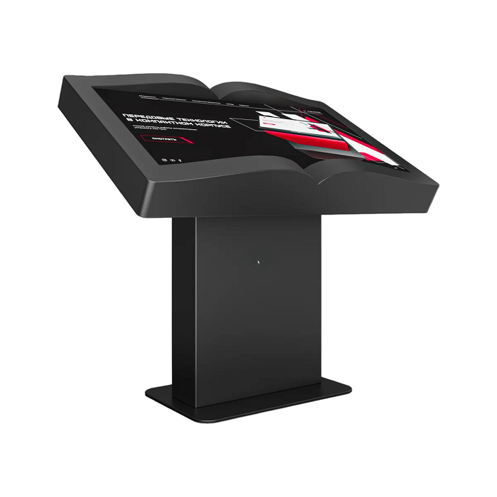 Интерактивный стол Book 65” – устройство, форм-фактор которого реализован в форме раскрытой книги. Механическая регулировка дисплея позволит настроить пользователям оптимальный угол для взаимодействия с программным обеспечением. Оборудование может быть дополнено информационным приложением или интерактивной книгой с эффектом пролистывания страниц.
